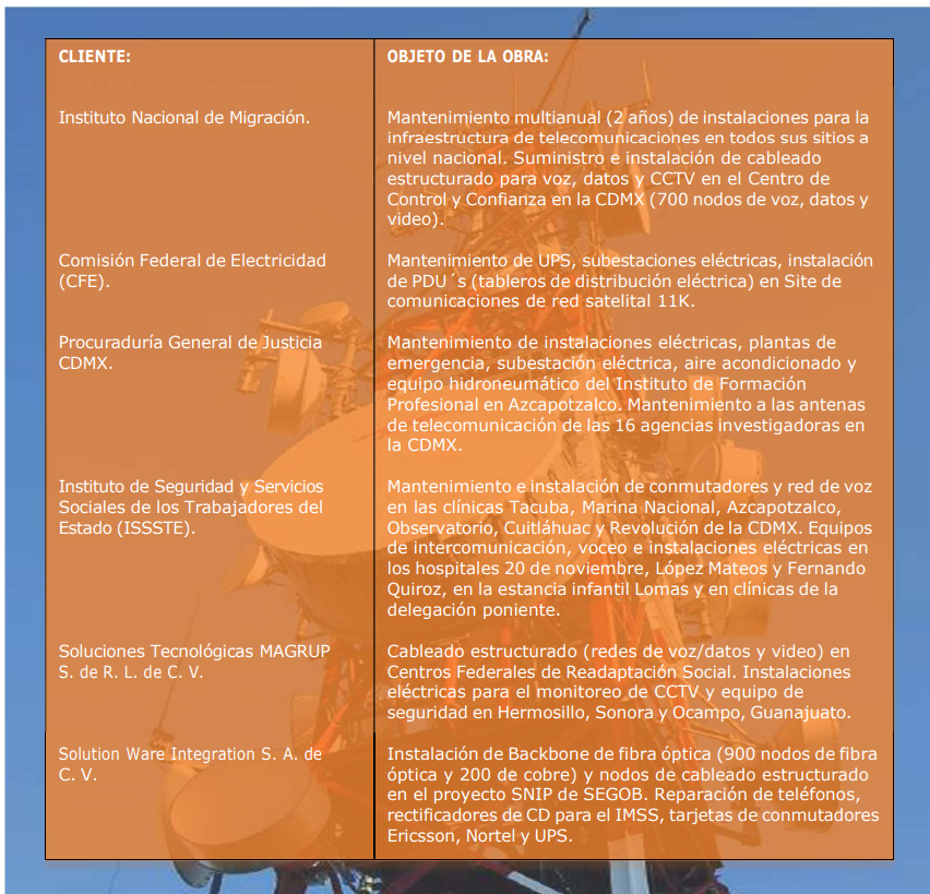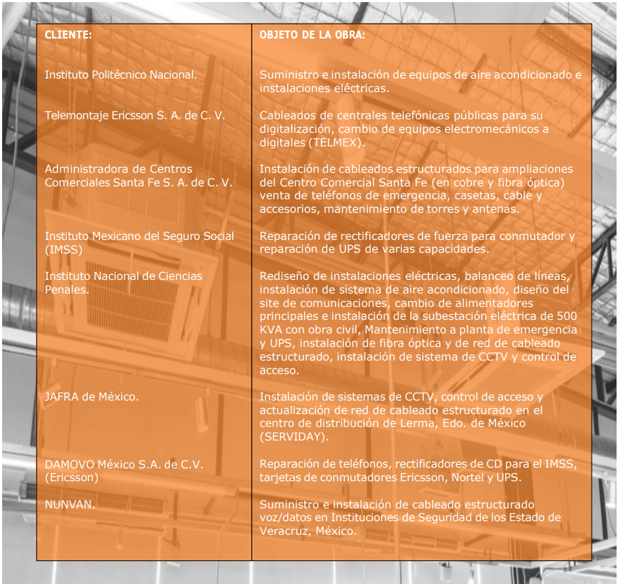 Nuestro corporativo abarca sectores clave en ingeniería, arquitectura, construcción, telecomunicaciones e instalaciones especiales , lo que nos permite ofrecer soluciones integrales y posicionarnos como un referente confiable en la industria.